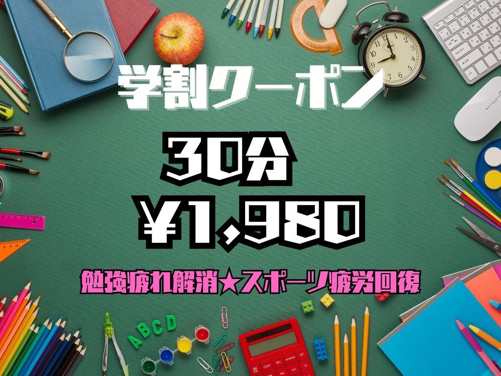 【web予約限定】初回限定30分【学割U24】学生応援★勉強疲れ解消/スポーツ疲労回復★新感覚ストレッチ整体